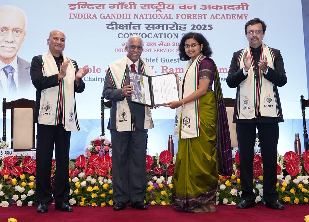 देहरादून: इंदिरा गांधी राष्ट्रीय वन अकादमी, देहरादून में प्रशिक्षणरत भारतीय वन सेवा (IFS) 2023 बैच के परिवीक्षार्थियों का दीक्षांत समारोह आज वन अनुसंधान संस्थान (FRI) के दीक्षांत गृह में भव्य रूप से सम्पन्न हुआ। समारोह के मुख्य अतिथि माननीय न्यायमूर्ति वी. रामासुब्रमण्यन, अध्यक्ष, राष्ट्रीय मानव अधिकार आयोग रहे, जिन्होंने परिवीक्षार्थियों को प्रमाणपत्र एवं पदक प्रदान कर सम्मानित किया।