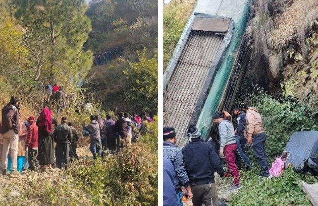 भिकियासैंण (अल्मोड़ा): मंगलवार सुबह शिलापानी बैंड के पास दर्दनाक सड़क हादसे ने पूरे क्षेत्र को झकझोर दिया। रामनगर जा रही कुमाऊं मोटर ओनर यूनियन (केएमओयू) की यात्री बस अचानक नियंत्रण खो बैठी और गहरी खाई में जा समाई। हादसे में सात यात्रियों की जान चली गई, जबकि 12 लोग घायल हो गए।