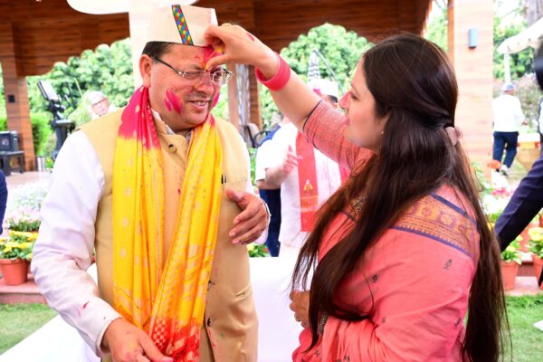 खटीमा में मुख्यमंत्री ने जमकर खेली होली, रंग-गुलाल के बीच लोकनृत्य का आनंद लिया